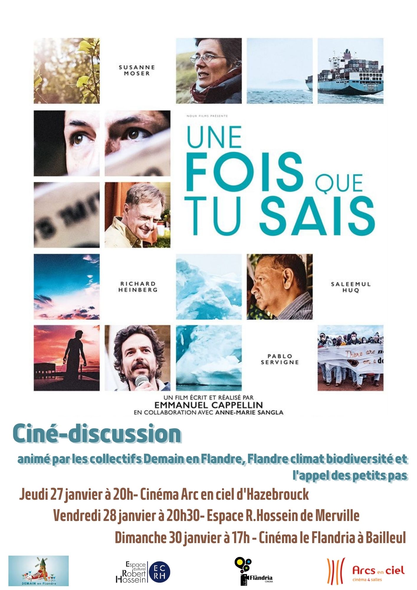 Demain en Flandre, Flandre Climat Biodiversité, l'appel des petits pas et les cinémas de Bailleul, Hazebrouck et Merville sont heureux de vous inviter à ces trois séances du film documentaire "Une fois que tu sais".